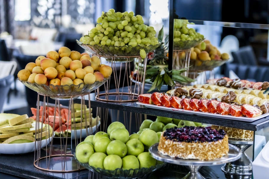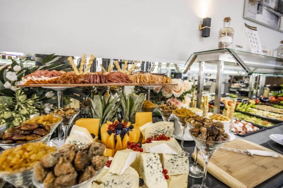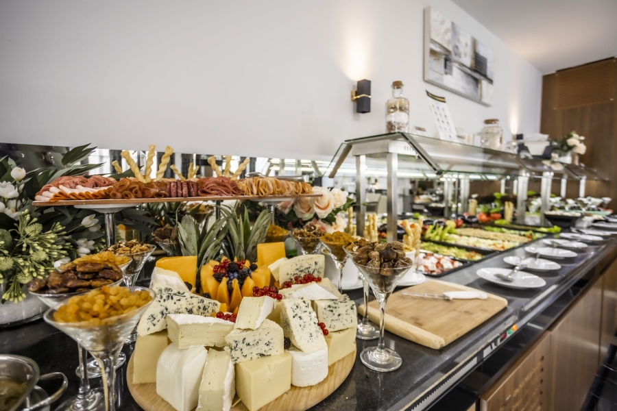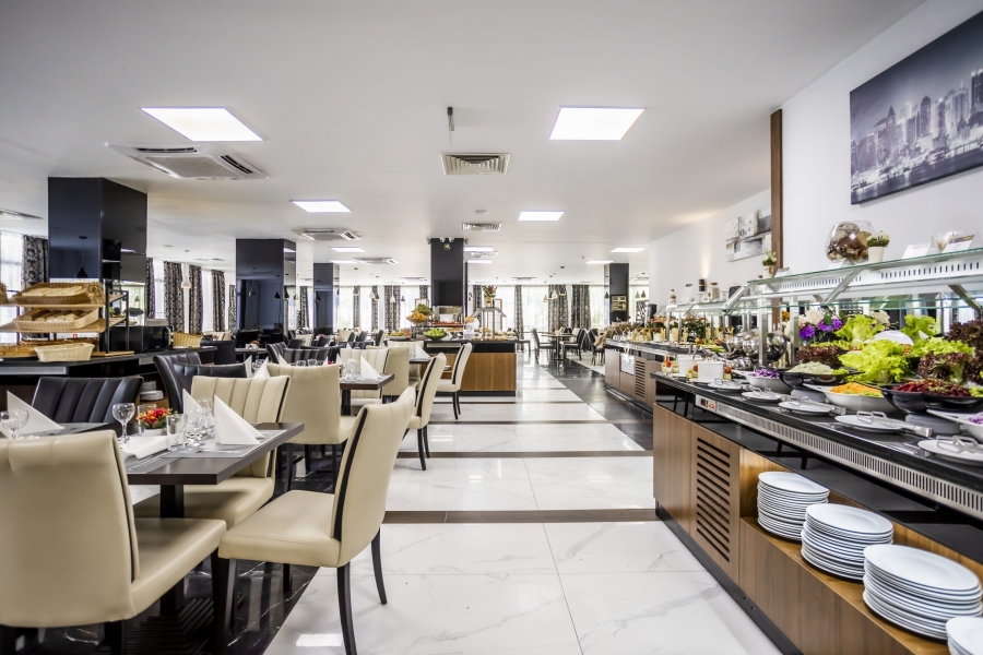 Das Restaurant des Hotels ist in einem zeitgemäßen, modernen Stil gestaltet und eingerichtet. Bietet Platz für 240 Gäste im Innenbereich und 120 auf der Terrasse des Restaurants. Unser Küchenchef bereitet abwechslungsreiche und köstliche Gerichte der internationalen Küche zu, die auf einem Buffettisch serviert werden. Zur Auswahl stehen Salate, Suppen, Vorspeisen, Hauptgerichte, Desserts, Obst und Eis.