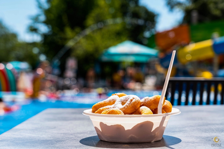 Unser neuester Imbissstand befindet sich zwischen dem Prestige Deluxe Aquapark Club Hotel und dem Prestige Hotel and Aquapark. Es bietet eine köstliche Auswahl an Klassikern wie Pommes Frites, Hot Dogs, Backwaren und Desserts. Die perfekte Wahl für einen schnellen Happen oder einen sättigenden Leckerbissen, denn für jeden ist etwas dabei.