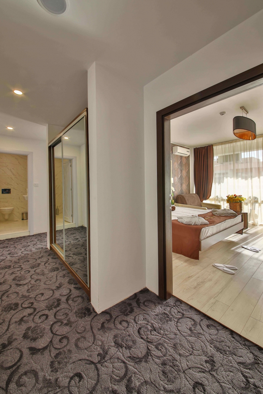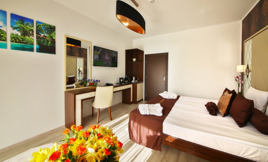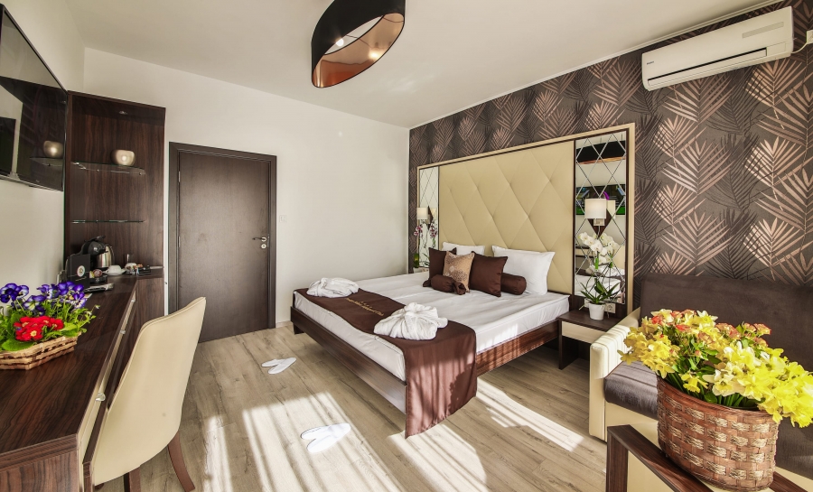 Das Apartment mit 2 Schlafzimmern verfügt über zwei separate Schlafzimmer. Das erste verfügt über ein großes Doppelbett und das zweite über zwei Einzelbetten. Es gibt auch ein eigenes Bad und einen Balkon mit Gartenmöbeln. Das Apartment ist mit einer zentralen Klimaanlage, einem Safe, einem Minikühlschrank, einem Wasserkocher, Internet, einem Fernseher mit Satellitenkanälen, einer Dusche und/oder Badewanne im Badezimmer, einem Haartrockner und Toilettenartikeln ausgestattet.
